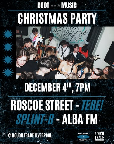 Roscoe Street close Bootmusic's end of year celebration at Rough Trade Liverpool. Alongside TERE!, SPLINT-R and Alba FM.